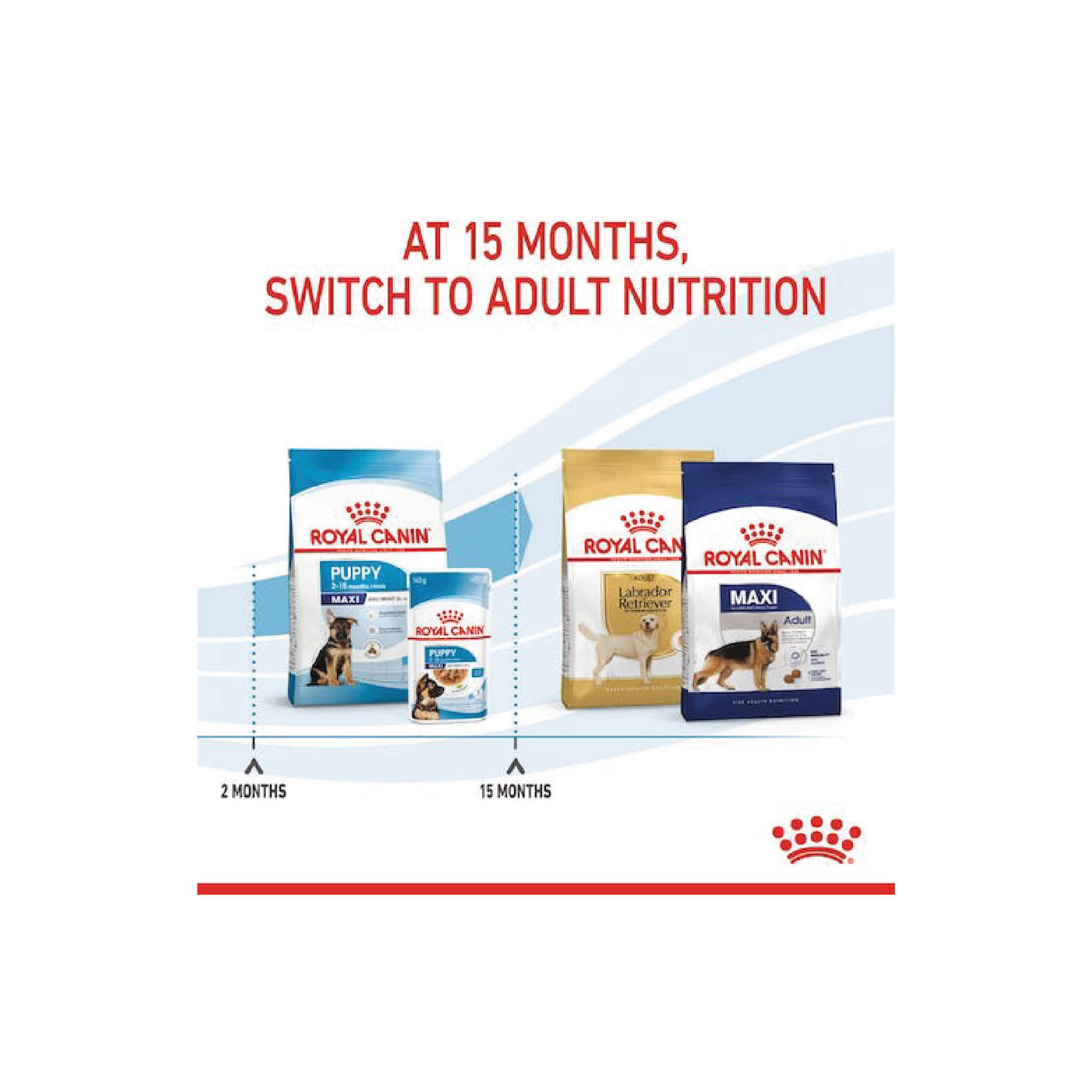 Adult target weight Pouch 140g Puppy Maxi chunks in gravy 2 months 3 4 5 6 7 8 9 10 11 12 13 14 16