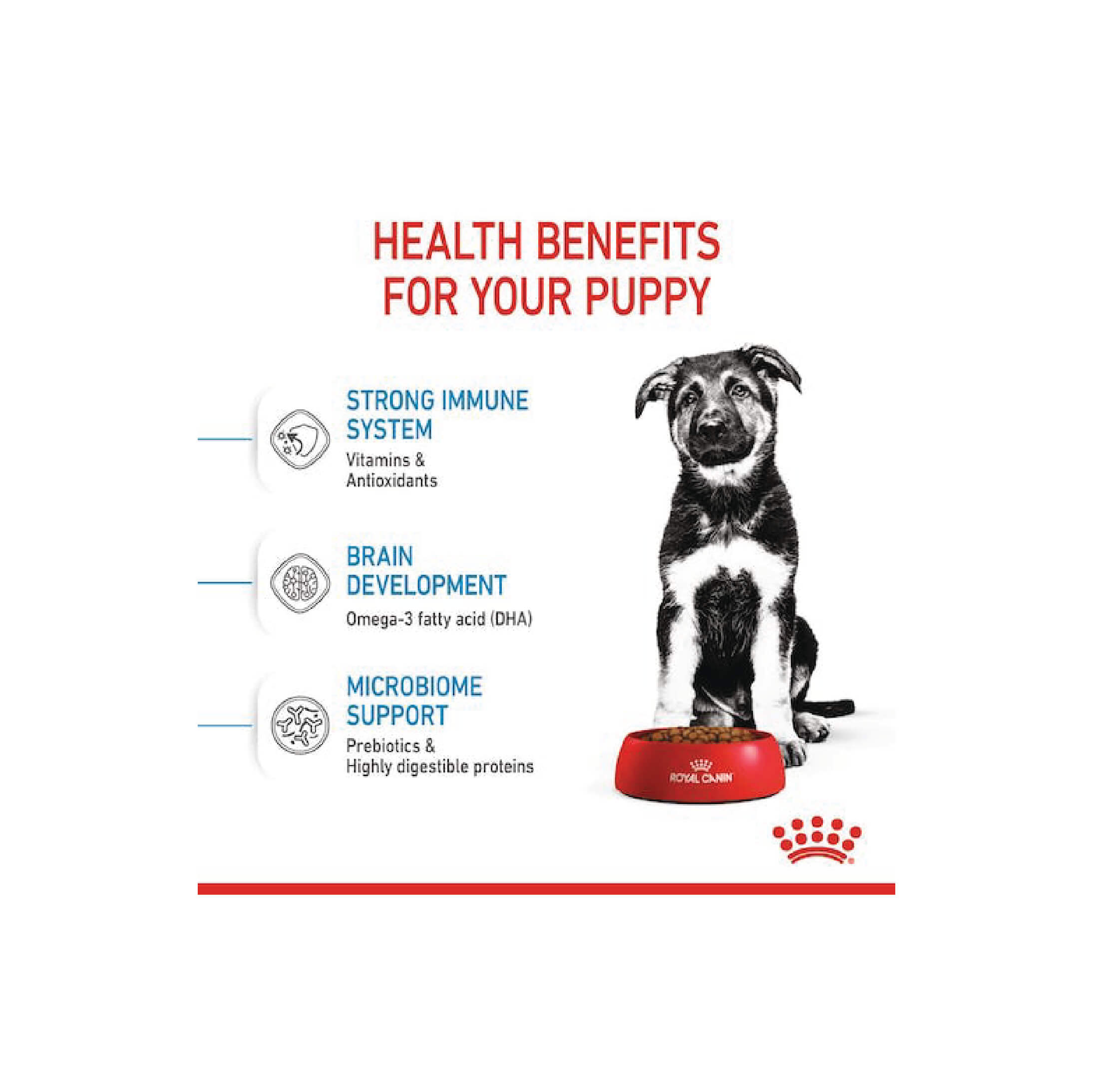 Helps support the development of the puppy’s healthy immune system with the inclusion of specific nutrients such as Vitamins E and C.