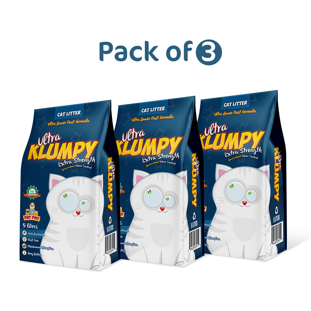 Ultra Klumpy is our top-performing variant. It is undoubtedly the shining star in the world of Cat litter. The finest quality bentonite from the best mines in Pakistan is procured and engineered into round balls of controlled size. These small balls trap the odours and keep them locked inside so the litter tray can last for longer without any unpleasant smell escaping into the air. The clumping of these balls is also excellent. They make small, lightweight, and rounder clumps that are strong yet they do not stick to the tray and are much easier to remove. We have also added a pleasant fresh scent to Ultra Klumpy that is delightful for the pet parents yet gentle and welcoming for the cat. Ultra Klumpy is worth its weight in gold because it turns out to be more economical in the long run since it lasts longer because of smaller clumps and is not so often required to change the whole tray.