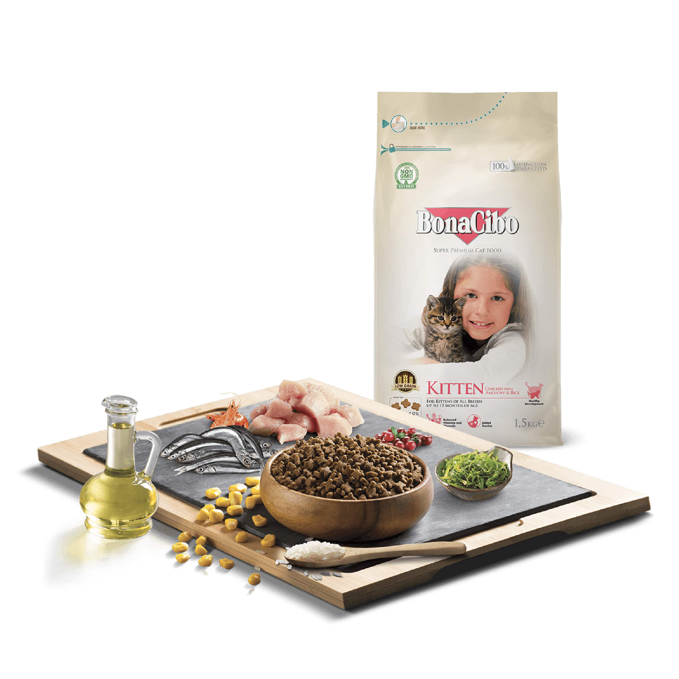 BonaCibo Kitten is formulated with the optimum balance of protein, fats and carbohydrates to provide healthy growth. It is also enriched with Omega-3 fats and essential minerals & vitamins to promote healthy metabolism and bone development.