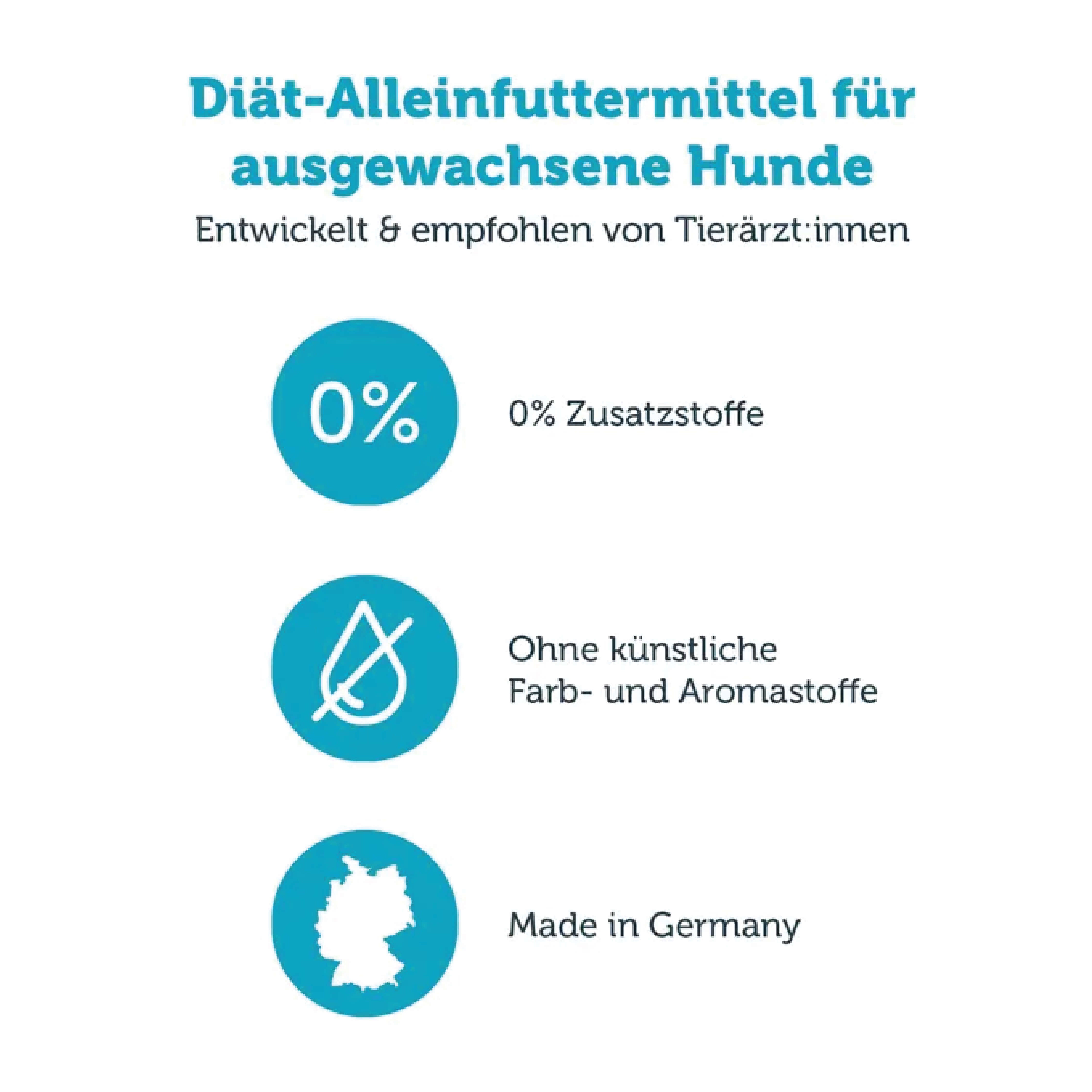 We rely on an easy-to-digest recipe because kidney problems are often associated with indigestion and reduced appetite. In addition, the intestinal flora is strengthened via prebiotic inulin.