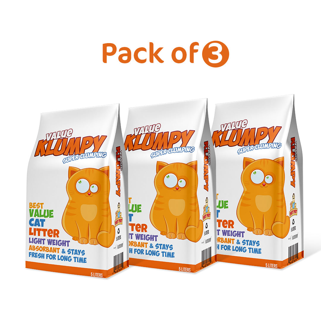 Value Klumpy is our best value cat litter, dependable and affordable. For the ones who are price conscious and yet need good quality. It is undoubtedly the workhorse of the cat litter world. It has good clumping and absorbance & stays fresher for a long time. Value Klumpy is made from bentonite clay sourced from our mines throughout Pakistan. It comes in a natural granular form and has low dust. All in all, an all-rounder product for reliable cat hygiene.